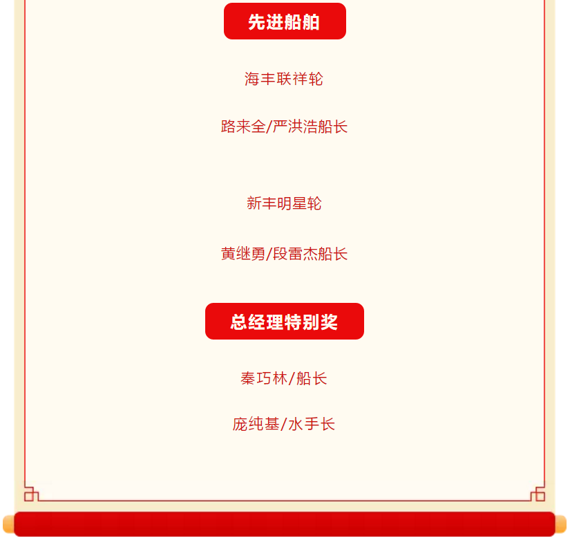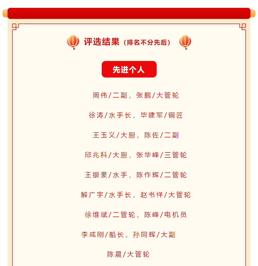 艱辛的一年就要過去了,為表彰先進,樹立典型,弘揚進取精神,充分調動廣大船員的積極性、主動性和創(chuàng)新性,進一步激勵工作在一線船員的工作熱情,形成“船船爭先進、人人比貢獻”的良好氛圍。經研究決定,對本年度內公司所有派員船舶及所派船員進行評比考核,結合船東對各輪的考核,評選出新的“先進船舶”、“先進個人”及“總經理特別獎”,并給予一定的物質獎勵。